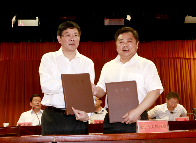 协议指出,“市政府将充分发挥在产业、环境、资金和政策上的有利条件,学校将利用在人才、信息、学科专业、科学研究和文化传承创新等方面的优势,共同推动咸宁市经济、政治、文化、社会建设,促进学校在服务地方的社会实践中提高办学实力和办学水平、扩大社会影响力和社会知名度。”协议要求,双方加强组织领导,成立战略合作领导小组,主要领导担任组长,实行联席会议制度;建立联动机制,成立战略合作联合办公室,处理、协调双方具体合作事宜。
