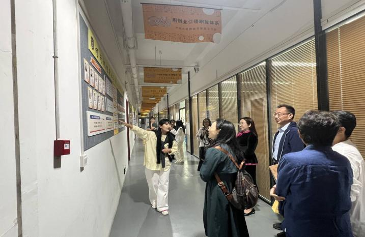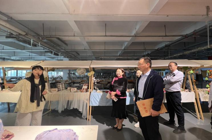 在相关领导的陪同下,何岳球主任一行首先参观了学院的实训基地、工作室及作品展示区,详细了解了服装设计、制作及非遗技艺的教学实践情况。张琪老师全程讲解,展现了服装学院在产教融合与非物质文化遗产技艺传承方面的创新成果。河南机电职业学院服装学院是河南机电职业学院直属的二级学院,依托河南省服装行业协会、河南服装龙头企业和产业园区共同构建的产教融合生产实训基地。该学院采用“教学创业公司”模式,学生“入学即入职、学习即上岗”,通过真实项目实践实现毕业即就业创业。学院还注重非遗文化的传承与创新,将传统非遗技艺融入现代服装设计教育中,形成了独具特色的教学体系,为师生提供了广阔的学习与交流平台。