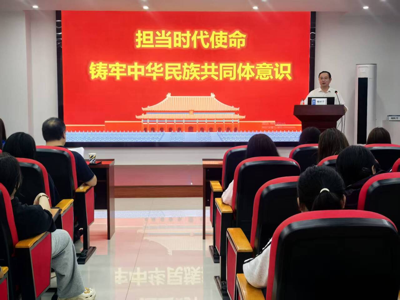 2025年9月29日晚,由我校党委统战部主办,人文与传媒学院、湖北省铸牢中华民族共同体意识研究基地承办的专题讲座《担当时代使命,铸牢中华民族共同体意识》在人文与传媒学院1505室举行。此次讲座旨在深入学习并贯彻习近平总书记关于加强和改进民族工作的重要思想,同时扎实推进学校2025年民族团结进步宣传月活动。